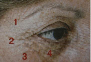 인디언 주름과 눈물고랑이 나타나기 시작하고 팔자주름이 깊어지기 시작하며 입가 주름도 생기기 시작하며 턱살이 처지기 시작한다.